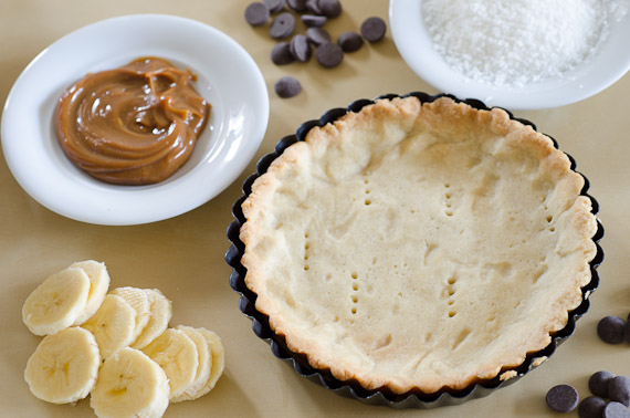 מכינים את הבצק: במעבד מזון עם להב פלדה מעבדים בפולסים קצרים קמח וחמאה. מוסיפים את שאר החומרים ועוצרים את הפעולה עם התגבשות הבצק. אוספים לכדור או ל”פיתה” ומאחסנים במקרר כחצי שעה. מוציאים מהקרור ומרדדים את הבצק לעלה בעובי של כחצי ס”מ. מרפדים תבנית פאי (כולל הדפנות), דוקרים במזלג, מניחים מעל נייר אפייה ושעועית יבשה כמשקולת. מכניסים למקרר לכ-15 דקות, בנתיים מחממים את התנור ל-180 מעלות. מכניסים את הבצק לתנור החם ואופים “אפייה עיוורת” כ-15 דקות, מורידים את הנייר והמשקולת ואופים עוד כ-10 דקות, עד להזהבה. מוציאים את הבצק המוכן מהתנור ומצננים.