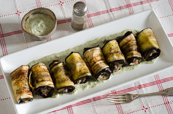 גלילות חציל ממולאות בבשר ובצנוברים- רטרו מטורף במטבח!