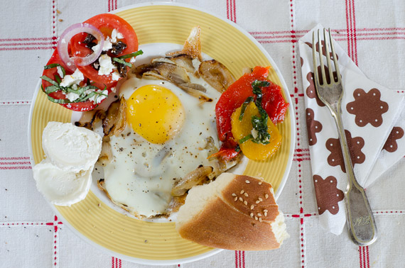 לפעמים, כל מה שצריך בחיים זה סנדוויץ’. פשוט סנדוויץ’. חלה טרייה, חביתת- עין שופעת בצל מטוגן, סלט פלפלים ביתי וגבינה משובחת.